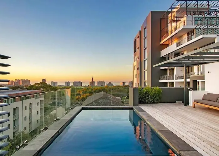 Spacieux| Appartement Greenpoint Hideaway Pool, Balcony, Luxury Living au Cap est situé à 4 km de la Plage de Clifton et à moins de 2 km du Parlement du Cap. Le domicile de 76 m^2 dispose du Wi-Fi, ainsi que d'un parking privé gratuit pour les clients voyageant en voiture.